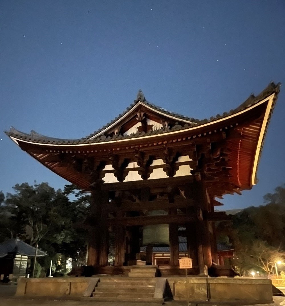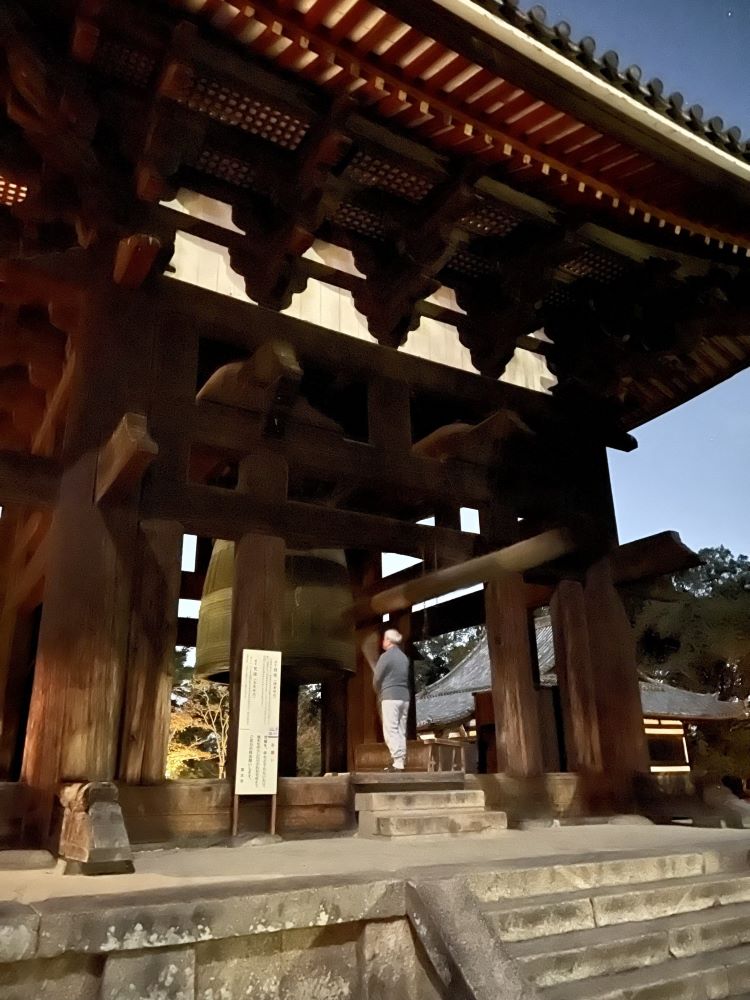 Todaiji Temple, Nara: The giant temple bell (national treasure) lights up the ancient capital at night